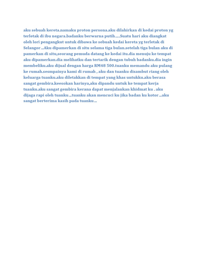 Related : Contoh Karangan Aku Sebuah Kereta : Aku dilahirkan di kilang proton di shah alam..