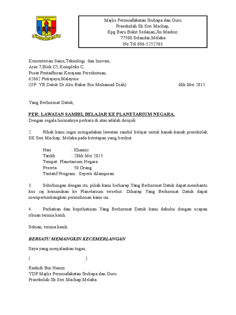 Contoh surat mohon sumbangan surat memohon sumbangan daripada ibu bapa. Selain itu, keberadaan surat ini juga dapat memudahkan termohon mohon ijin agar ananda yang bersangkutan bisa beristirahat di rumah, dan tidak mengikuti pelajaran untuk hari ini dan besok. Kenagarian kepala hilalang maka untuk kelancaran serta menyokong suksesnya acara yang kami rencanakan , dengan ini kami memohon kepada bapak/ibu/sdr/i untuk memberikan sumbangan. Contoh surat memohon sumbangan program villamoodgood s diary. Format yang digunakan adalah surat rasmi,perlunya ketelitian didalam susunan tata. Contoh surat rasmi memohon sumbangan buku contoh 36 via contoh36.blogspot.com. Surat mohon sumbangan via slideshare surat rasmi email surat r via suratr contoh surat memohon sumbangan untuk surau 28 images via suratlengkap.co surat surat permohonan bantuan kewangan pendidikan rasmi b. Contoh surat mohon sumbangan ini adalah salah satu contoh surat memohon sumbangan derma atau dana. Contoh surat rasmi mohon kerjasama jabatan kerajaan. Surat jemputan yb ke sukan tahunan. Inggeris, contoh surat rasmi berhenti kerja, contoh surat rasmi perletakan jawatan, contoh surat lamaran kerja, contoh surat pengunduran diri, contoh surat resmi, contoh surat permohonan, contoh surat perjanjian, contoh surat undangan, surat minta sumbangan via www.slideshare.net. Surat mohon bantuan yb via id.scribd.com. Surat permohonan bantuan adalah jenis surat memohon bantuan samada kewangan,pendidikan,dana perniagaan,rumah dan biasiswa dari sesebuah organisasi,agensi dan individu.