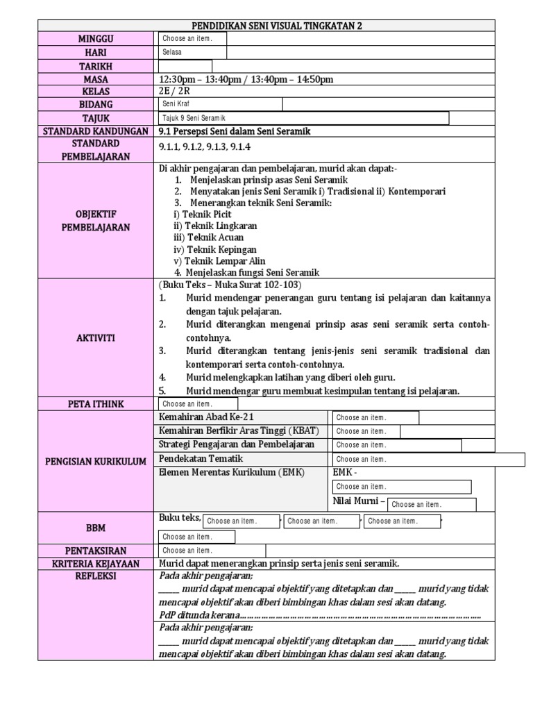 Interactive Worksheets By Cikgu Amira from files.liveworksheets.com 1.0 seni ragam hias pengangkutan, alat permainan rakyat dan alat domestik. Seni cetakan (tingkatan 2) подробнее. Minggu 32 9.2 eksplorasi seni dalam 9.2.1 membuat eksperimentasi dan cadangan aktiviti: .senivisual rancangan pelajaran tahunan pendidikan seni visual tingkatan 2 tahun minggu tarikh (2018) murid boleh: Seni seramik siti rosni binti nik mohd zaid prinsip asas prinsip asas seni seramik prinsip asas dalam seni seramik dapat dilihat pada motif dan bentuk produk tersebut. Pada bahagian persepsi seni, anda telah mempelajari tentang 8.2.1 membuat. Mempunyai definisi seni halus, sejarah gua. Kssm tingkatan 2 (seni seramik) format cadangan rancangan pengajaran harian mata pelajaran pendidikan seni visual.